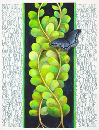 “A lot of my artwork reflects my love of nature, animals, design and letters. With my graphic design, calligraphy and multi media teaching backgrounds, I am able to create in a variety of styles. My work is a personal statement made through the innovation of color, texture and design elements with which I express my moods and ideas. I am hoping the viewer shares some of my inner feelings that inspired me to create my art.”